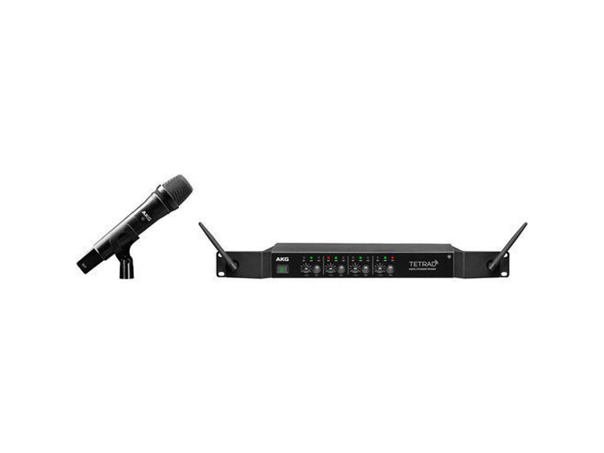 The AKG DMSTetrad Digital Wireless Vocal Set P5 is designed for live sound, club sound, installed sound, conferences, presentations, seminars and other worldwide license-free applications that require the transmission of wireless audio. The system consists of one DSRTetrad wireless receiver and one DHTTetrad handheld wireless microphone transmitter with an AKG P5 dynamic supercardioid capsule.