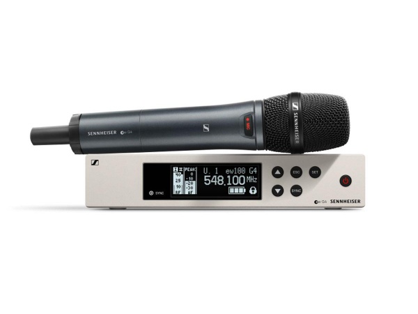 Wireless vocal set. Includes (1) SKM 100 G4-S handheld microphone with mute switch, (1) e 865 mic capsule (supercardioid, condenser), (1) EM 100 G4 rackmount receiver, (1) GA3 rack kit, (1) RJ10 linking cable and (1) mic clip, frequency range:1G8 (1785 - 1800 MHz)