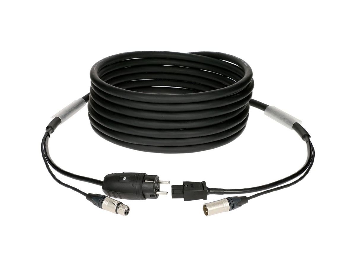 The rugged PVC outer jacket encloses the finely stranded power cable with cross-section of 3 x 2.5 mm² and the double-shielded signal conductor (foil and braided copper shields). They are available with the following connector options: XLR 3p., power CON A, powerCON TRUE1 and earthed plug.