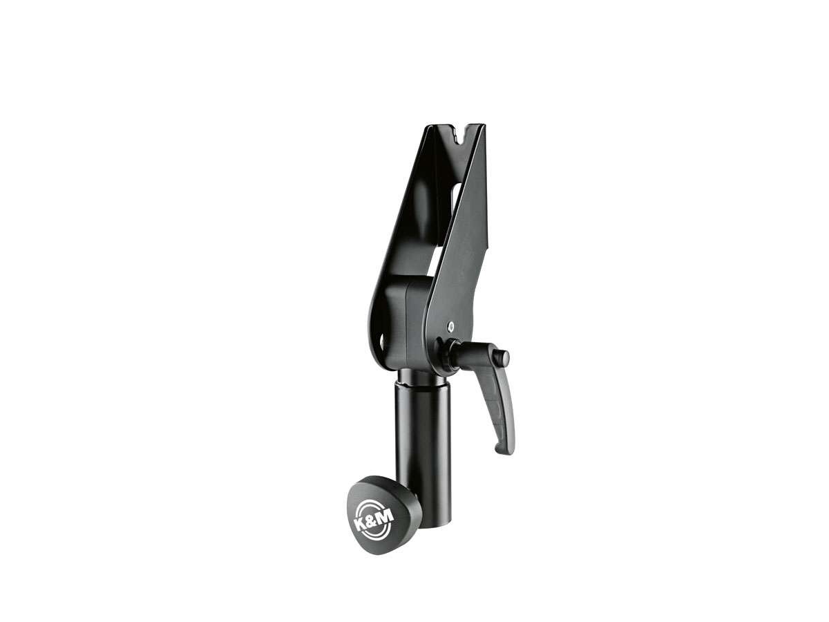 Multifunctional stand adapter for mounting on stands with ø 35 mm extension tubes. The adapter can be adjusted to an inclination of +60° to -30°. The fixation follows by means of an adjustable clamping lever. The adapter plates 19615, 19616 and 19617 can be used to mount a wide variety of screens up to a mounting hole pattern of VESA 200 x 200 mm. The adapter plates 24352 to 24359 are suitable for accommodating a large number of loudspeaker cabinets.