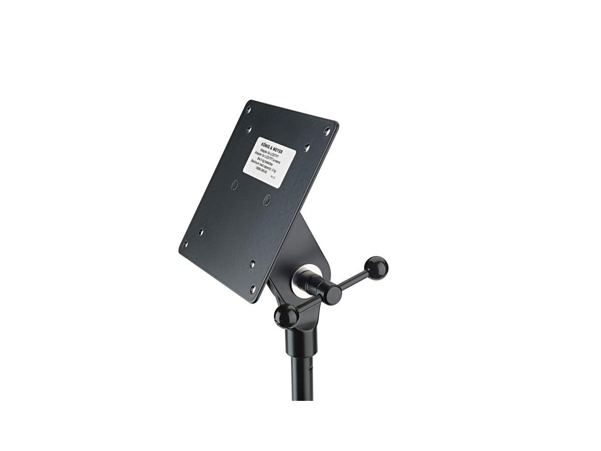 Adapter for attaching a small LCD/LED screen to a stand using a swivel joint with a 3/8" thread. In compliance with VESA MIS-D 75 / VESA MIS-D 100, the attachment plate can easily be mounted on the stand with the prismatic connection.