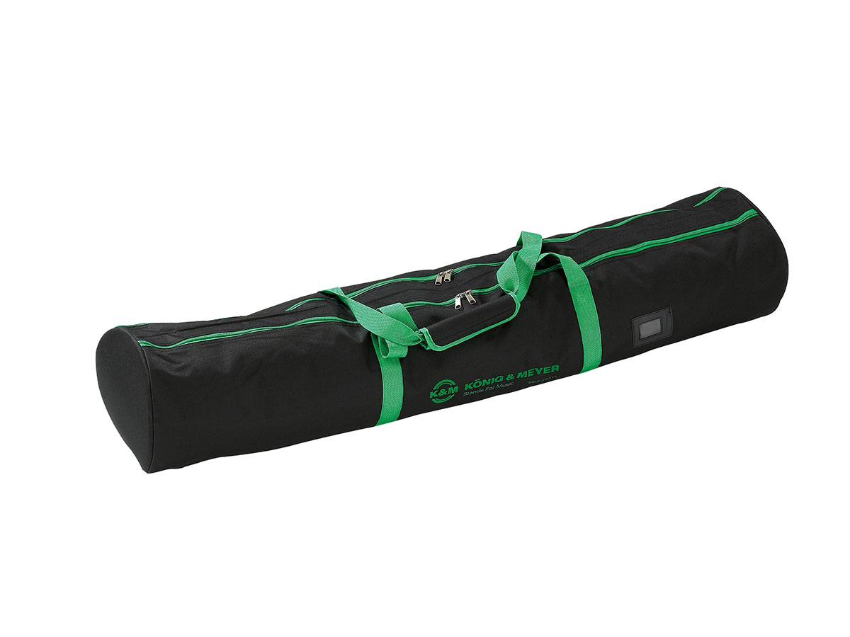 Holds two K&M speaker/light stands 213, 214/6 etc. Made from black waterproof nylon with silk-screened K&M logo. Two inside compartments with zipper and sturdy handles.