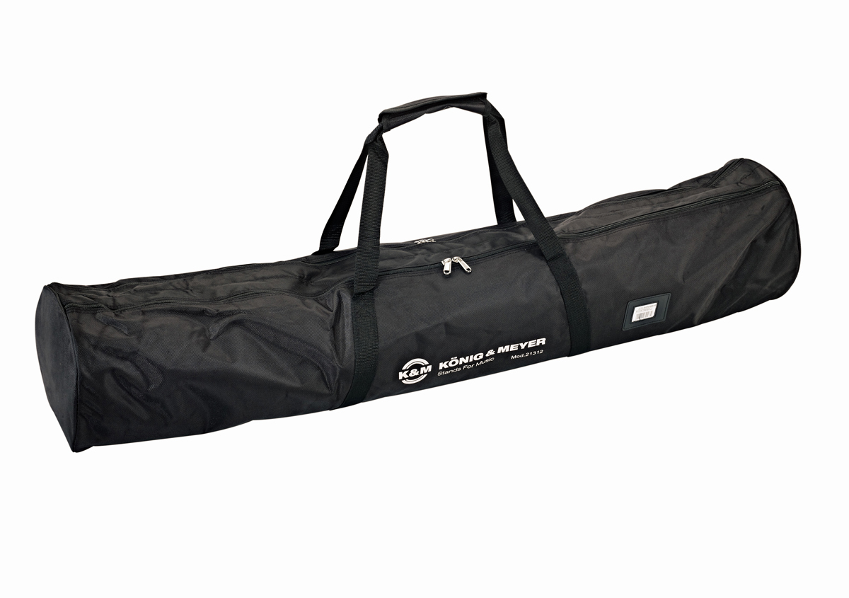Holds two K&M speaker/light stands 213, 214/6 etc. Made from black waterproof nylon with silk-screened K&M logo. Two inside compartments with zipper and sturdy handles.