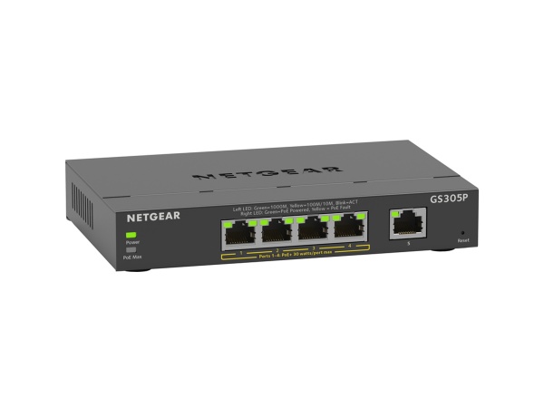 Netgear GS305P | 5-Port Gigabit Ethernet SOHO Unmanaged Switch with 4-Ports PoE+ (63W)