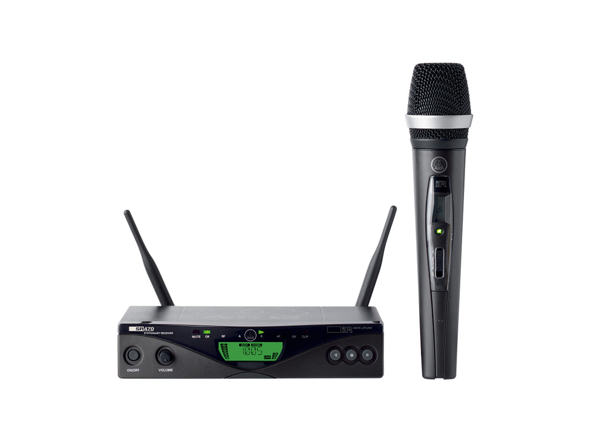 WMS470 is a professional multichannel wireless microphone system with pilot tone transmission to prevent unwanted noise. The Vocal Set D5 includes a HT470 handheld transmitter featuring a dynamic D5 capsule for well-balanced, powerful sound. The space diversity receiver offers both a microphone level and a line level output.